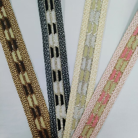 حزام بوليستر مع سلسلة من الخرز ، قطع معدنية أنيقة من الأكريليك لتزيين الملابس أو الأحذية