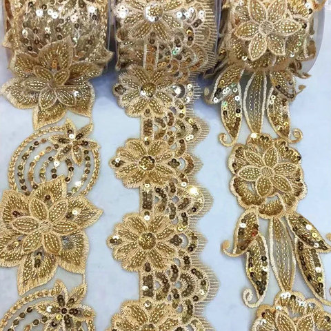 Alta qualità decorazione francese pizzo di pizzo fatto di pizzo in oro paillettes in pizzo per abiti