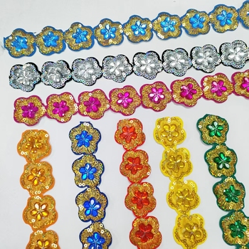 Perline di strass fatte a mano all'ingrosso ricamate in pizzo multicolori ricamate in poliestere 3D rifilatura in pizzo